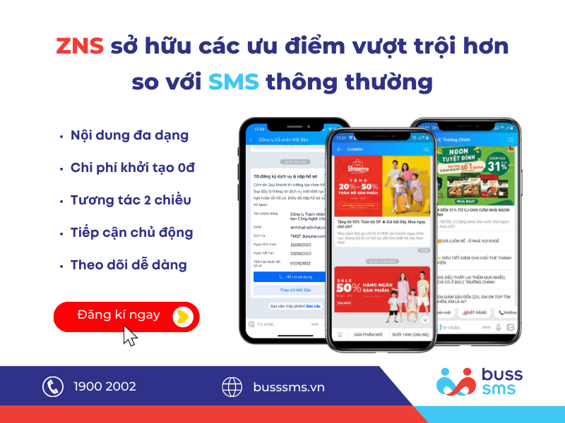 Đăng ký ngay tin nhắn ZNS với Buss SMS để được hưởng nhiều ưu đãi.