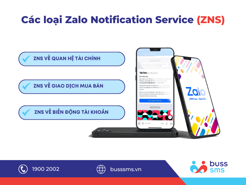 1. ZNS về quan hệ tài chính: thông báo và cập nhật quan hệ tài chính giữa người nhận và doanh nghiệp. Ví dụ: sao kê thẻ tín dụng, xác nhận giải ngân thành công, thông báo nhắc nợ,…